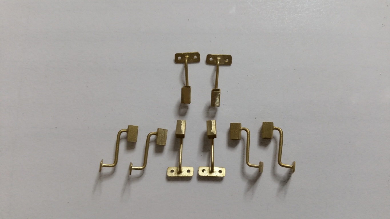 1821 Zugschlussscheibenhalter, gebogen im Maßstab 1:13 Innendurchmesser des Vierkant 2,1 mm. Höhe gesamt 16 mm. Diese Halter waren bei vielen Schmalspurbahnen im Einsatz, bspw. bei der MPSB. 8 Stück Messing-Feinguss 18,00 €